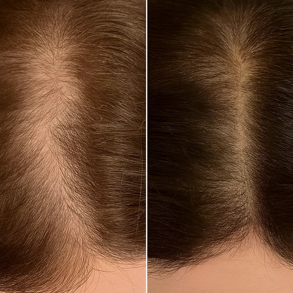 Estimulación activa la circulación y despierta folículos en reposo, frenando la caída progresiva y favoreciendo el crecimiento de cabellos nuevos más fuertes y densos.