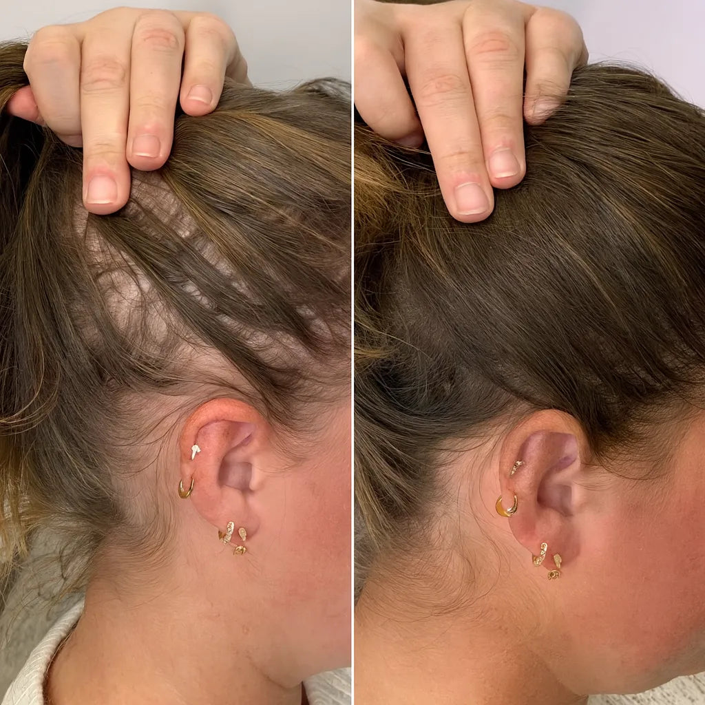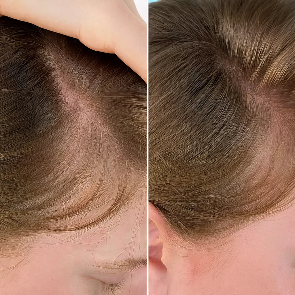 Estimula la regeneración natural de los folículos, reduce la caída diaria y ayuda a recuperar volumen y confianza tras el embarazo.